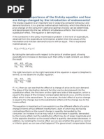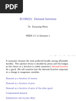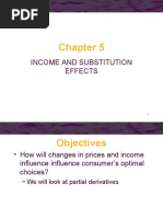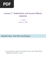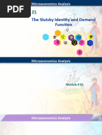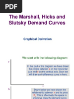 which is Slutskys equation. Consider first the case where i=j i.e. we are considering the effect of a change in pi on the demand for xi. In this case, eqn (26) simply says that the slope of the Marshallian demand function is the sum of the substitution effect, Hi pi , and the income effect, xi Di M . What can we say about the signs of these terms? The first we can sign