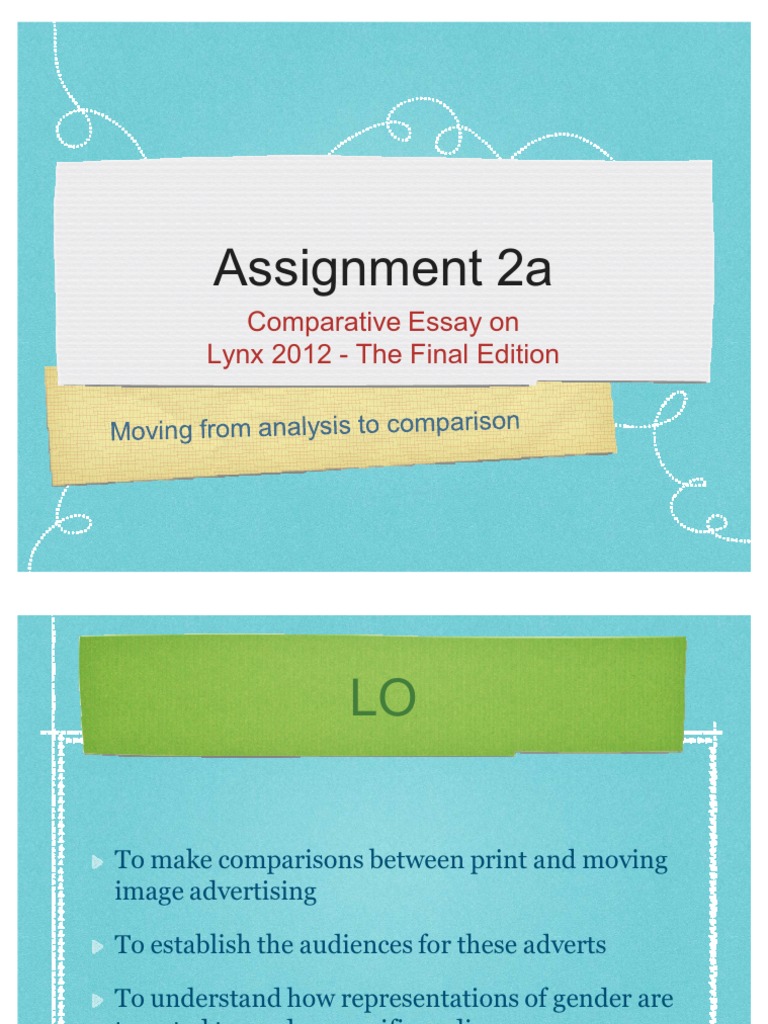 To make comparisons between print and moving image advertising To establish the audiences for these adverts To understand how representations of gender are targeted towards a specific audience