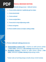 U prolim lancima ukratko smo objasnili osnovne principe rada motora sa unutranjim izgaranjem (motori u naim automobilima). Ali, jo uvijek nismo razjasnili kako se okretni moment (vrtnja) koljenastog vratila (radilice) motora prenosi na kotae, i pokree automobil. Izmeu motora i kotaa nalazi se dosta vie ili manje kompliciranih sklopova postavljenih upravo u tu svrhu. Nazivamo ih transmisija. Dakle, pod tim pojmom smatramo sklopove koji sudjeluju u prijenosu okretnog momenta (vrtnje) od motora do kotaa. Sklopovi transmisije imaju 2 osnovna zadatka -prenose snagu (okretni moment) od motora do kotaa -prilagoavaju okretni moment i broj okretaja motora zahtjevima vonje Postavlja se (retoriko) pitanje, zato nije mogue spojiti motor direktno sa kotaima ? Za to postoji dosta razloga, vie ili manje oiglednih. Zamislimo da je motor direktno vezan sa kotaima automobila. Kako bi izgledalo pokretanje? Nikako. Ne bi uspjeli krenuti. Da bi se auto pokrenuo, potrebno ga je postupno optereivati, to je jedno od nezgodnih svojstava motora sa unutarnjim izgaranjem. Naime, oni se ne mogu pokrenuti pod optereenjem. Takoer, da bi se automobil pokrenuo, treba savladati odreene otpore (otpori kotrljanja, trenja, zraka...), za to je pak potrebna odreena snaga i okretni moment, koji ovise o broju okretaja motora. Pogledamo li dijagram snage motora sa unutranjim izgaranjem u ovisnosti o broju okretaja, vidimo da je ta snaga pri cca. 1000 okretaja/min (broj okretaja praznog hoda motora, kada nije stisnuta papuica gasa, lehr gas) malena. Znai, kada pokreemo motor, on je odvojen od kotaa (spojka je pritisnuta) Pritiskom na papuicu gasa poveavamo broj okretaja motora, snaga raste, postupno otputamo pedalu spojke, tj. spajamo motor sa kotaima pri veem broju okretaja (i veoj snazi) i automobil se pokree. Dakle, kao to smo ve naveli, da bi se automobil pokrenuo sa mjesta, motor treba pokrenuti rastereen i postupno ga optereivati. Transmisija mijenja odnos izmeu broja okretaja i okretnog momenta motora i kotaa, kako bi prilagodili rad motora zahtjevima vonje. Kada se uspinjemo uz brdo sa punim automobilom, treba nam veliki okretni moment, a brzina nam nije vana, nego samo da se [Link] vozimo u niskom stupnju prijenosa (nia brzina, nrp. 2.) Kada se pak vozimo po auto-putu, vano nam je da se vozimo brzo, ali kako je ravna cesta, kontinuirano optereenje, nije nam potreban veliki okretni moment, pa vozimo u visokom stupnju prijenosa (4 ili 5 brzina). Zamislite da vae vozilo nema mjenjaa brzina, ve kontinuirano vozite, npr. u 2. brzini. Prilikom kretanja morali bi biti vrlo njeni sa spojkom (kuplungom, kvailom) da bi uope uspjeli krenuti, a maksimalna brzina vozila bila bi