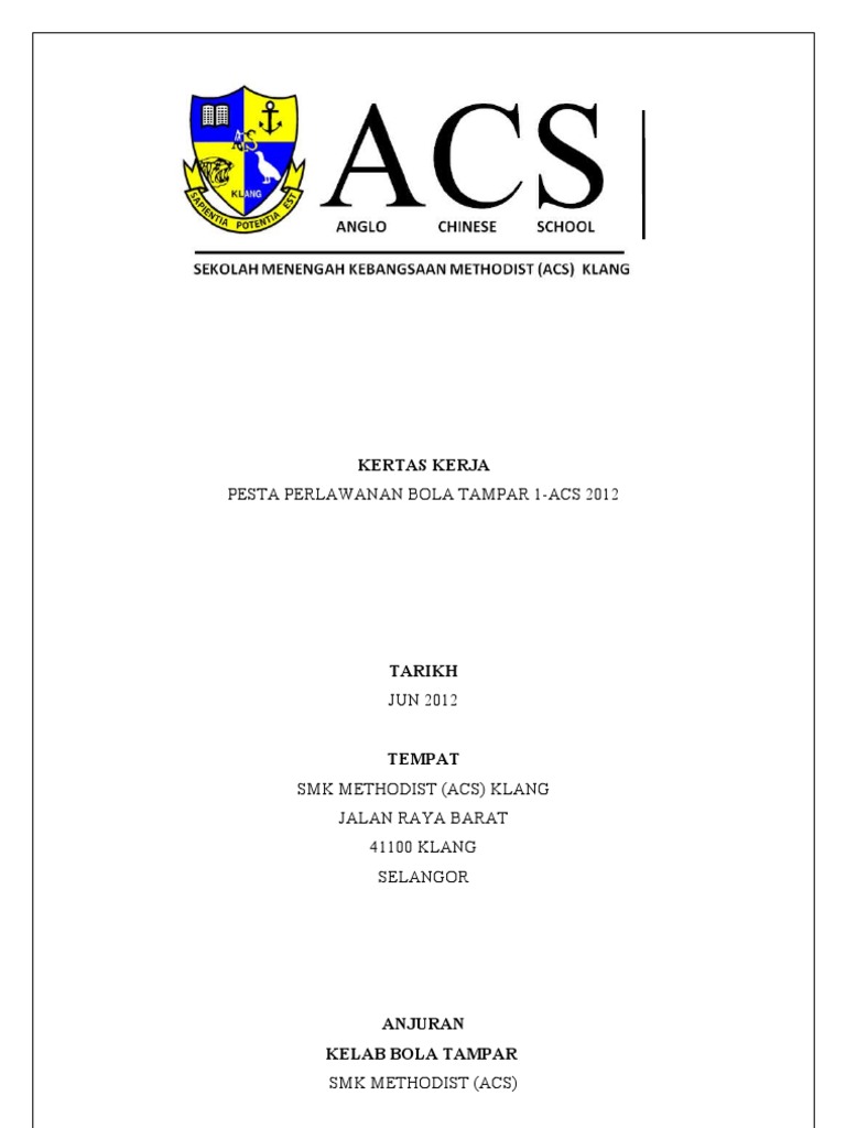 The document announces a badminton tournament hosted by the badminton club of SMK Methodist (ACS) school in Klang, Selangor, Malaysia. The tournament will take place in June 2012 at the SMK Methodist (ACS) school located at Jalan Raya Barat in Klang. The badminton club of SMK Methodist (ACS) is organizing the event.