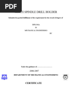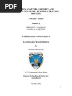 The MULTI SPINDLE DRILLING MACHINE (Eccentric Drive) is one which can be used to drill a number of holes at various large and even unsymmetrical layouts according to our requirements, where the conventional Multi spindle drilling machines cannot be used. This is an improvement over geared drill heads and drill heads adopted with universal joints. This is an improvement over geared drill heads and drill heads adopted with universal joints. The drill head is mounted on the drilling machine table. The drill head spindle is inserted in to the machine spindle. It is used to drill a number of holes in different layouts according deals with a proper idea of usage of eccentrics in the field of drilling. The report furnishes a cost estimation of all the components of the equipment by careful considerations of all factors such as cost of material, labour, machining and purchased components.