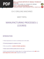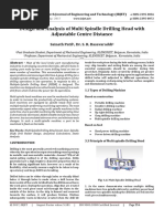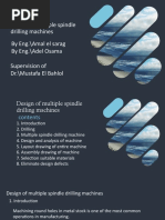 A Multi spindle drilling machine will drill a number of parallel holes simultaneously in a work piece. Multi spindle drilling machines are employed for work of a light character, especially repetition work, such as drilling small components for the Automobile and Aircraft industries. A Multi spindle drilling machine has a number of drill spindles driven by a single motor. All the spindles holding the drills are fed in to the work piece at the same time. For this purpose, either the drill heads can be lowered onto the work piece or the work table is raised.