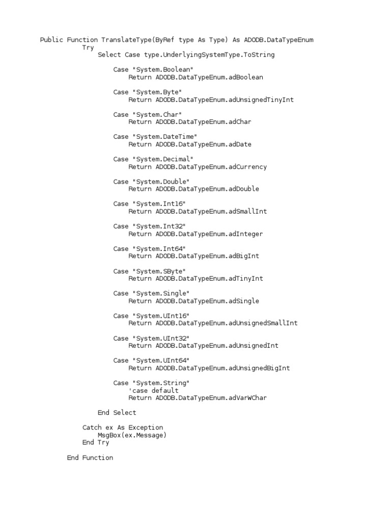 Public Function TranslateType(ByRef type As Type) As ADODB.