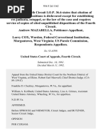 • Andrew Mazarella v. Larry Cox, Warden, Federal Correctional Institution, Morgantown, West Virginia Us Parole Commission, 956 F.2d 1162, 4th Cir. (1992)