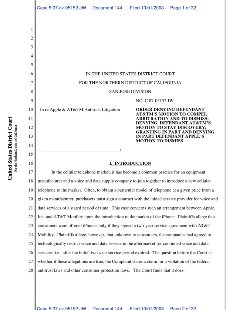 10 In re Apple & AT&TM Antitrust Litigation ORDER DENYING DEFENDANT