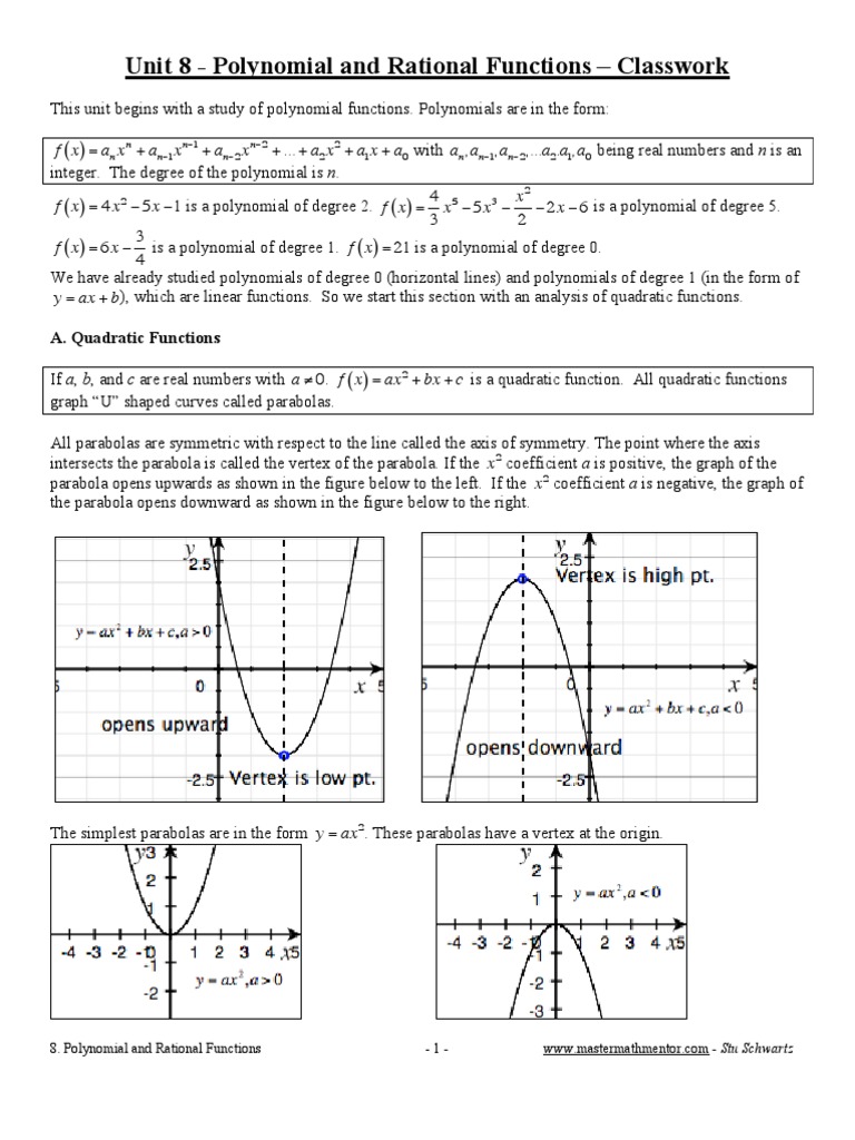 8. Polynomial and Rational Functions - 10 www.mastermathmentor.com - Stu Schwartz