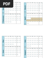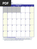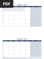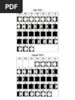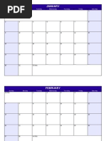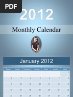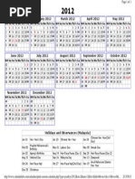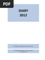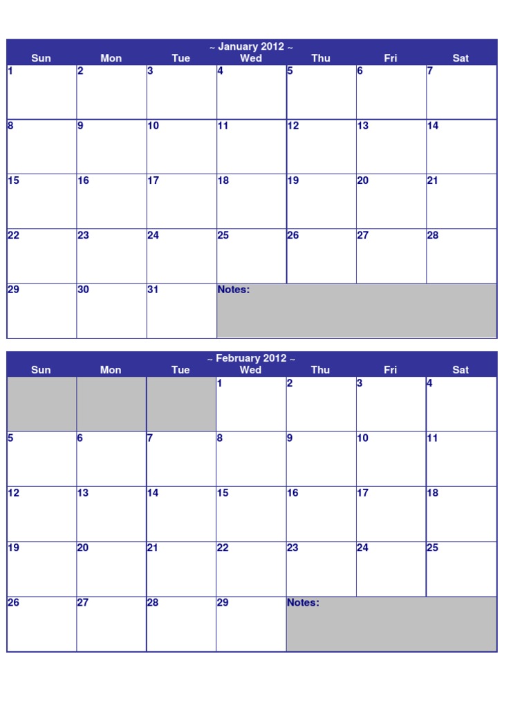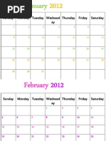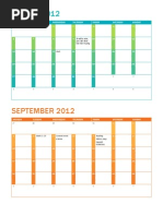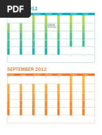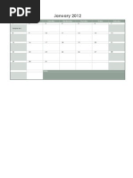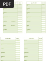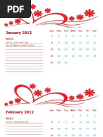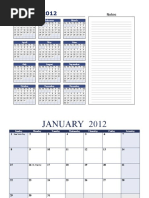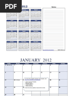 The document contains calendar pages for each month from January 2012 through December 2012. Each page displays the days of the month in a grid with columns for the days of the week and rows for the weeks. There are notes sections at the bottom of each month but no other notable information on the pages.