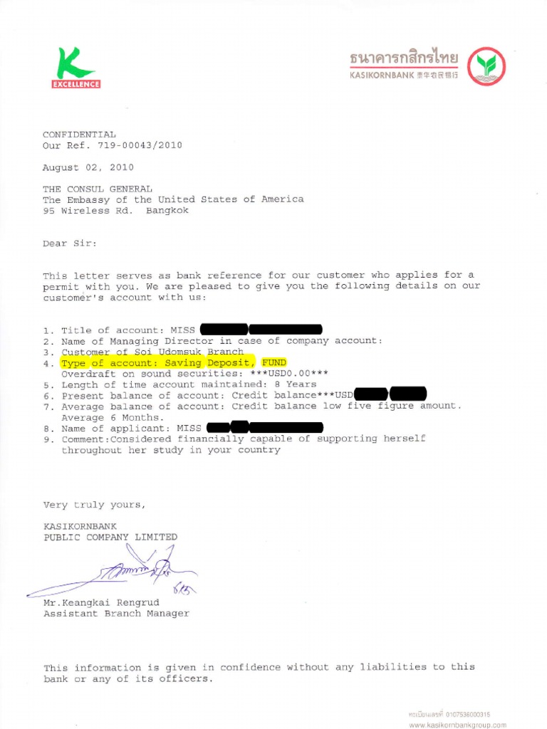 of account: MISS PANNIKA ,ITRAPANUPHOL of Managing DirecLor in case of company account: Customer of Soi Udomsuk Branch Type of account: Saving Deposit, FUND Overdraft on sound securitiesr ***USDo.00*** Length of tlme account maintained: B Years Present bafance of account: Credit bafance***USD49,65'1 -63*** Average balance of account: Credit bafance 1ow five figure amount Average 6 Monl-hs. Name of applicant: MISS PANI KA ,]IRAPANUPHOL capable of supporting herself Comment: Consldered financially throuqhout her study in your country Title