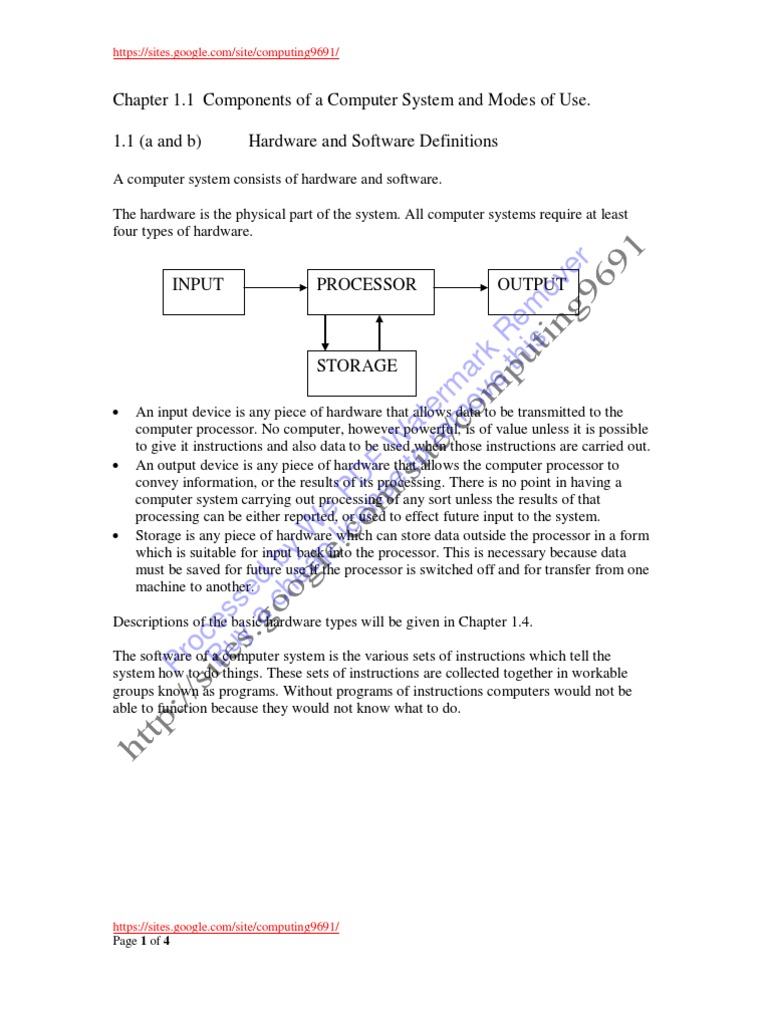 Chapter 1.1 Components of a Computer System and Modes of Use. 1.1 (a and b) Hardware and Software Definitions