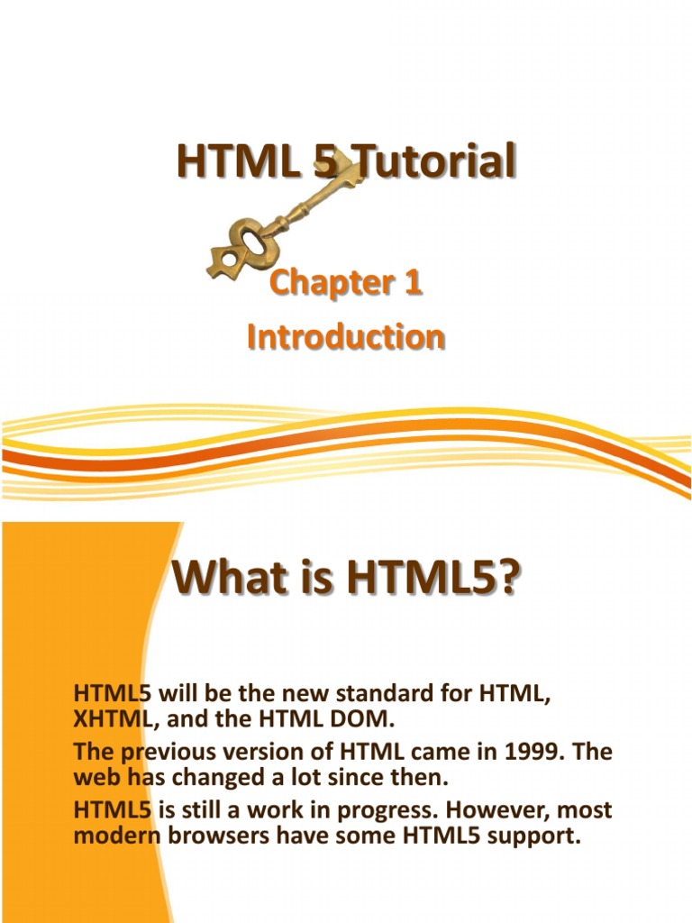 HTML5 will be the new standard for HTML, XHTML, and the HTML DOM. The previous version of HTML came in 1999. The web has changed a lot since then. HTML5 is still a work in progress. However, most modern browsers have some HTML5 support.