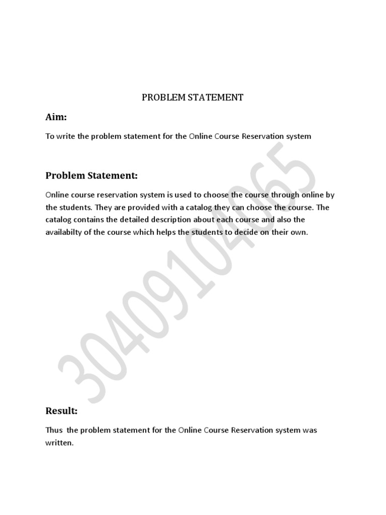 Thus the problem statement for the Online Course Reservation system was written.
