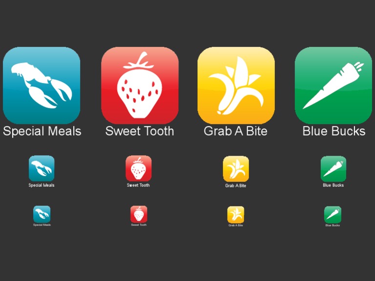 This document lists four short phrases: Special Meals, Sweet Tooth, Grab A Bite, and Blue Bucks. It repeats these phrases in four sections with no other context or details provided.