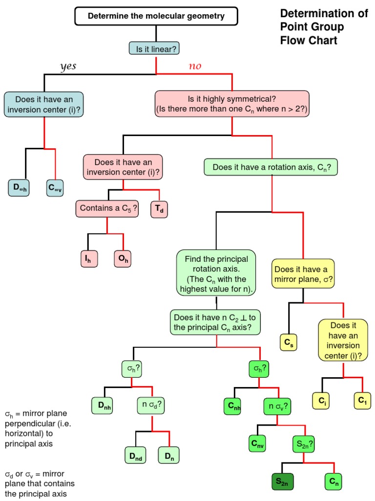 Oh Find the principal rotation axis. (The Cn with the highest value for n). Does it have n C2 to the principal Cn axis? Does it have a mirror plane, s?