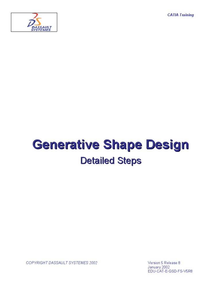 Mobile Phone...............................................................................................................................................4 Step 1: Creating the Wireframe Geometry...............................................................................................4 Mobile Phone...............................................................................................................................................9 Step 2: Creating the Surfaces..................................................................................................................9 Mobile Phone.............................................................................................................................................17 Step 3: Performing operations................................................................................................................17 Mobile Phone.............................................................................................................................................24 Step 4: Analyzing and Modifying............................................................................................................24 Mobile Phone.............................................................................................................................................32 Step 5: Completing the part in Part Design............................................................................................32 Wireframe Recapitulation Exercise............................................................................................................36 Surface Recapitulation Exercise................................................................................................................40 Operation Recapitulation Exercise.............................................................................................................50 Advanced Tasks Recapitulation Exercise..................................................................................................63 Knob..........................................................................................................................................................74 Step 1: Creating the Wireframe Geometry.............................................................................................74 Step 2: Creating the Basic Surfaces.......................................................................................................77 Step 3: Performing Operations the Basic Surfaces................................................................................78 Step 4: Analyzing and Modifying the draft angle....................................................................................85 Step 5: Offsetting a solid........................................................................................................................87 ...................................................................................................................................................................92 Plastic Bottle..............................................................................................................................................93 Step 1: Bottle Bottom Creation...............................................................................................................93 Step 2: Bottle Body Creation................................................................................................................117 Step 3: Bottleneck................................................................................................................................137 Step 4: Assemble the three bodies ......................................................................................................167 Step 5 : Create the Bottleneck Screw...................................................................................................183 Space Mouse Base Solution....................................................................................................................196 Step 1: Create the Filleted pad.............................................................................................................196 Step 2: Create the surfacic elements...................................................................................................202 Step 3: Sew the surface on the Pad.....................................................................................................209 Step 4: Create the Groove...................................................................................................................210 Step 5: Split the solid with an imported surface....................................................................................212 Step 6: Shell the created solid..............................................................................................................214 Step 7: Create the Shaft.......................................................................................................................215 COPYRIGHT DASSAULT SYSTEMES 2002 2