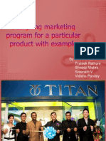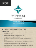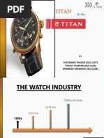 Leading Manufacturer: Titan Industries is the world's fifth largest and India's leading manufacturer of watches. Customer Base: The company has manufactured more than a 100 million watches till date; and has a customer base of over 80 million. Market Share: The Titan portfolio has over 60% of the domestic market share in the organize watch market. The company has 247 exclusive showrooms christened World of Titan', making it amongst the largest chains in its category backed by 700 after-sales-service canters. World Class Design Studio: The Company has a world-class design studio that constantly invents new trends in wrist watches. Wide Choice in Style: Titan decided to inundate consumers with a wide choice in style, function sand price . The initial range was 350 models. Retailer: Titan brought in the concept of retailing into the watch market, established a network of fine showrooms, which would later become the world's largest network of exclusive watch stores. Advertising: Titan saw this as a vital investment. Right from beginning Titan invested significantly in advertising and in that process created a set of memorable and effective properties over the years. Brand Ambassadors: Titan engaged major celebrities like Amir Khan , Kapil Dev as Brand ambassadors for its Titan range.