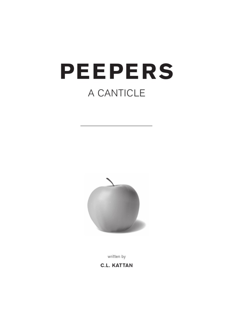 with an unadulterated The Magnificent Ambersons or a Truffaut-helmed Bonnie and Clyde. The prevailing notion has become that the scathing political criticism of George W. Bush contained therein would have been a brew too bracing for the dyspeptic stomach of the country at the time, but I think perhaps its affront was far more simple, though vastly more radical: love. In the headlong rush to the Iraq war, what could have been more dangerous to the Military-Industrial groupthink than a story concerning the full-scale breakdown of societal norms in the face of pure, single-minded love? Possessed by an indefatigable desire for apples, Mr. Peepers ventures from his home in search of sustenance, thereby inciting a series of events that culminate in his ascension through the highest echelons of society to the very precipice of the Presidency itself. If such simple actions could put lie to the notion of American politics as meritocracy, then might all hegemonic structures be equally pliable? Surely the knowledge that it was Fortunas hand and not Horatio Algers hoisting his bootstraps would spread disquiet, if not ferment anger of a far greater magnitude. As a historian, it is not my place to conjecture, but if evidence is one day uncovered that orders to suppress Peepers, a canticle were handed down all the way from the Oval Office, well let me just say I shall be surprised not in the least. Peepers, a canticle is a work sui generis, but that is not to say it is without literary antecedents. Mr. Peepers oft-repeated Bah owes no small debt to Bartleby, the Scriveners invocation I would prefer not to, his rise to the heights of power through misconstrued impassivity reminiscent of The Good Soldier vejk, but it is from the greatest story ever told that Kattan draws most heavily: the Bible. The character of Eve and the centrality of apple as metaphor for knowledge are but the most obvious of biblical allusions throughout a canticle, itself a liturgical term. No doubt an enterprising theologian could make great hay of the dying man whom Peepers redeems- Eleazar, from the Hebrew name for Lazarus. There is a treatise in even his license plate, ELEZ 11. A reference to the resurrection of Lazarus from John 11 or a sly nod to Chapter 11 bankruptcy and the moral deprivation of the financial sector that Eleazar represents? It is a fertile vein, which I plan to mine further in a future exegesis concerning Mr. Peepers as progenitor of the Occupy Movement.