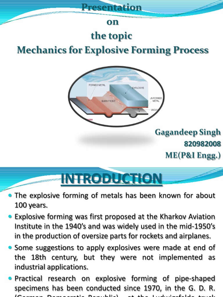 Presentation on the topic Mechanics for Explosive Forming Process