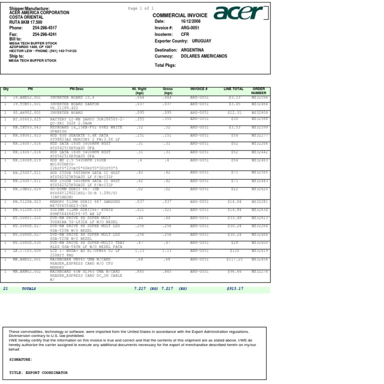 Qty PN PN Desc Nt. Wght Gross INVOICE # LINE TOTAL ORDER
