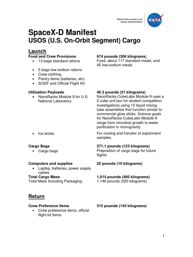 SpaceX-D Manifest