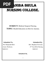 normal as possible. IORN THERAPY oral therapy potential therapy IRON SUPPLIMENTATION Several iron preparation- ferrous sulfat, ferrous glunate &ferrous fumarate are available for treating iron deficiency anemia. One tablets of iron sulfate provide 60 mg of elemental iron. Thus it is important to continue iron for as long as 6-12 month.. In some cases, oral iron is poorly absorbed or poorly tolerated or needed in large amount. In this situation IM or IV of iron dextron may be needed. Iron dextron should be injected deeply into each buttock using the z track technique. NURSING MANAGEMENT Preventive education is important because iron deficiency anemia is common in menstruating and pregnant women.