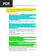 on the economies of TWO of the following regions: o The Northeast o The Midwest o The South 1) Introduction pg 252 a) Setting the scene i) 1815-1860 in Northeast and Midwest America b) Background information on the Market Revolution i) Revolution brought about changes in (1) transportation (a) facilitated movement of commodities, information and people (2) textile mills and factories (a) created many jobs, especially young women (3) Innovations in banking, legal practices, and tariff policies (a) Promoted swift economic growth ii) Accelerated pace of economic activity and scale of distribution of goods iii) Nations money supply increased (1) Investments in commerce, manufacturing, transportation, and land c) Thesis i) The Market revolution promoted widespread economic growth in America but affected regions differently; The Northeast focused on growing capitalism and factories while the Midwest centered on migration and agriculture. 2) Northeast a) Topic Sentence i) In the Northeast, the market revolution impacted mechanization, factories, and the banking system in an advantageous way which resulted in economic growth. b) Mechanization/manufacturing (pg 282) i) Mechanization allowed manufacturers to produce more with less labor (1) Interchangeable parts known as the American system (a) Standardized parts ii) New England led the nation in manufacturing (1) Shipped goods such as guns, clocks, plows, and axes (2) Manufacturers specialized in producing for the gigantic domestic market rather than for export helped the national economy c) Factory work (page 255) i) In 1821, group of Boston Entrepreneurs founded town of Lowell on the Merrimack river in Massachusetts