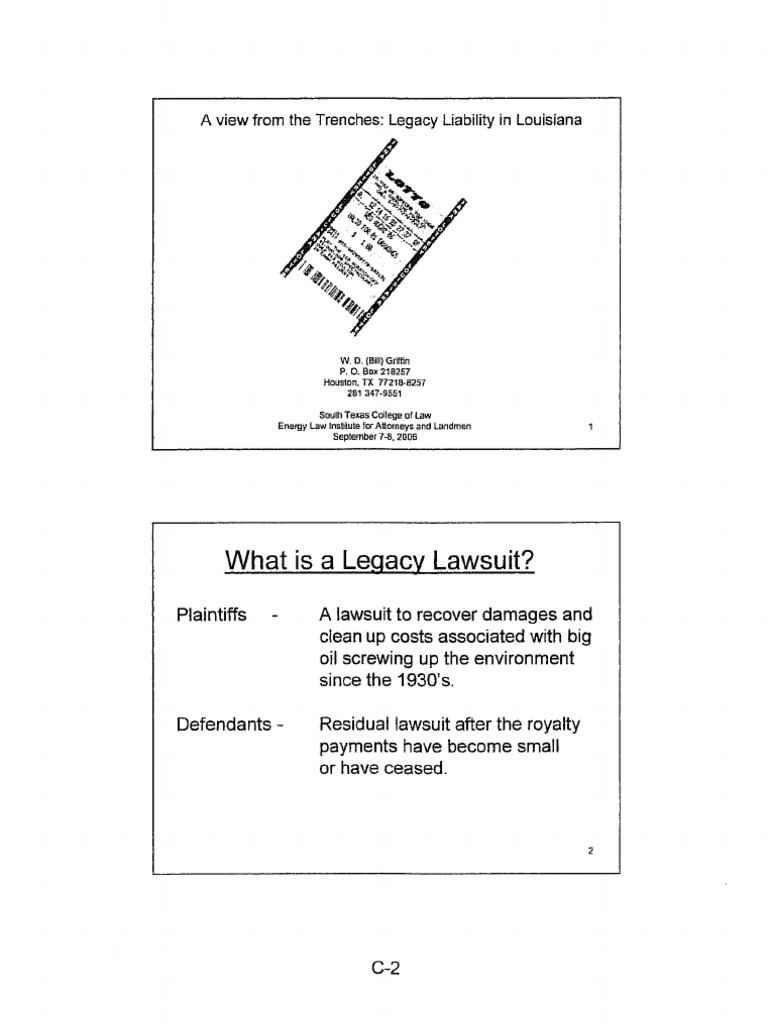 Energy consultant Bill Griffin advises plaintiff's attorneys to find naturally occurring environmental damage, blame oil companies for it, then sue those companies.