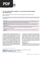 n 1988, Fornage [1] produced the rst review of imaging ndings of peripheral nerves using sonography. Continual technologic improvements, including the availability of high-frequency transducers (6-13MHz) and variable footprint sizes, have led to an increase in the use of sonography in the imaging of peripheral nerves [24]. We believe that sonography should be the primary technique for imaging