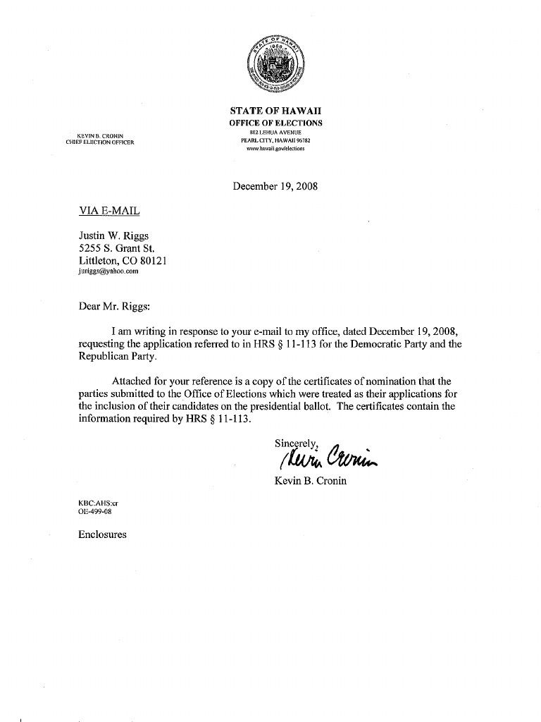 Hawaii - Dems and Repubs Say Constitutionally Eligible