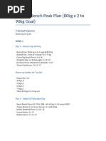 Date: Starting Bench 1rm Week 1 Weight Monday Warmup Warmup Warmup Bench Bench Bench Squats Squats Dips Wednesday Warmup Warmup Warmup Bench Bench Deadlift Deadlift Pullups Friday Warmup Warmup Warmup Bench Bench Incine DB BP CGBP 55 65 80 130 130 130 Reps 5 5 3 3 3 3 5 5 Monday Warmup Warmup Warmup Bench Bench Bench Squats Squats Dips 200 Week 2
