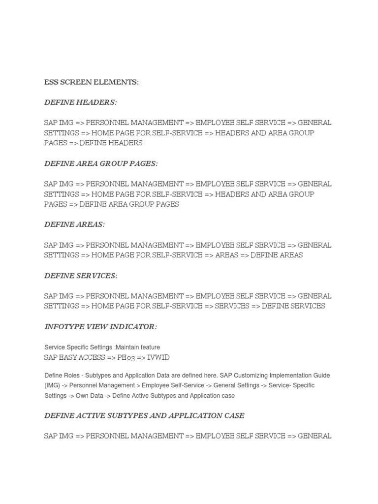 GENERAL SETTINGS => HOME PAGE FOR SELF-SERVICE => HEADERS AND AREA GROUP PAGES => DEFINE HEADERS DEFINE AREA GROUP PAGES: SAP IMG => PERSONNEL MANAGEMENT => EMPLOYEE SELF SERVICE => GENERAL SETTINGS => HOME PAGE FOR SELF-SERVICE => HEADERS AND AREA GROUP PAGES => DEFINE AREA GROUP PAGES DEFINE AREAS: SAP IMG => PERSONNEL MANAGEMENT => EMPLOYEE SELF SERVICE => GENERAL SETTINGS => HOME PAGE FOR SELF-SERVICE => AREAS => DEFINE AREAS DEFINE SERVICES: SAP IMG => PERSONNEL MANAGEMENT => EMPLOYEE SELF SERVICE => GENERAL SETTINGS => HOME PAGE FOR SELF-SERVICE => SERVICES => DEFINE SERVICES INFOTYPE VIEW INDICATOR: