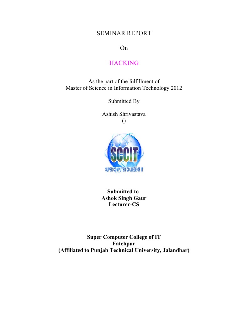 SEMINAR REPORT On HACKING