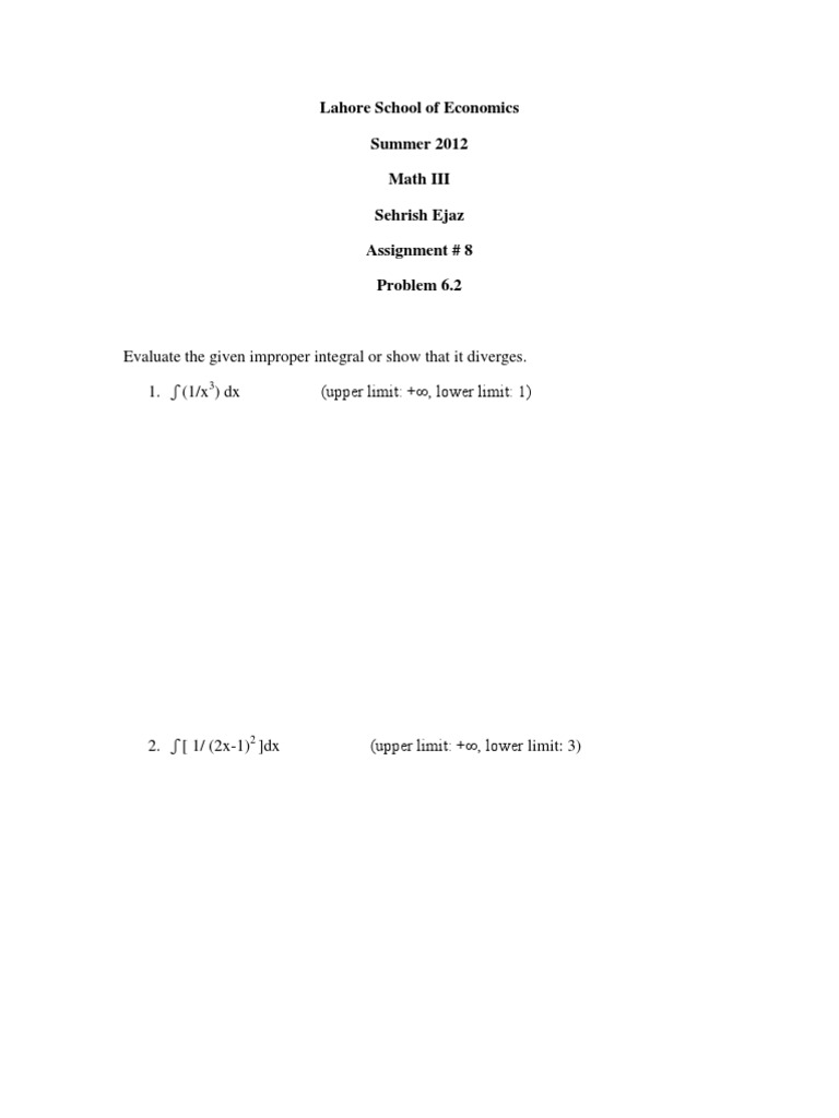 Lahore School of Economics Summer 2012 Math III Sehrish Ejaz Assignment # 8 Problem 6.