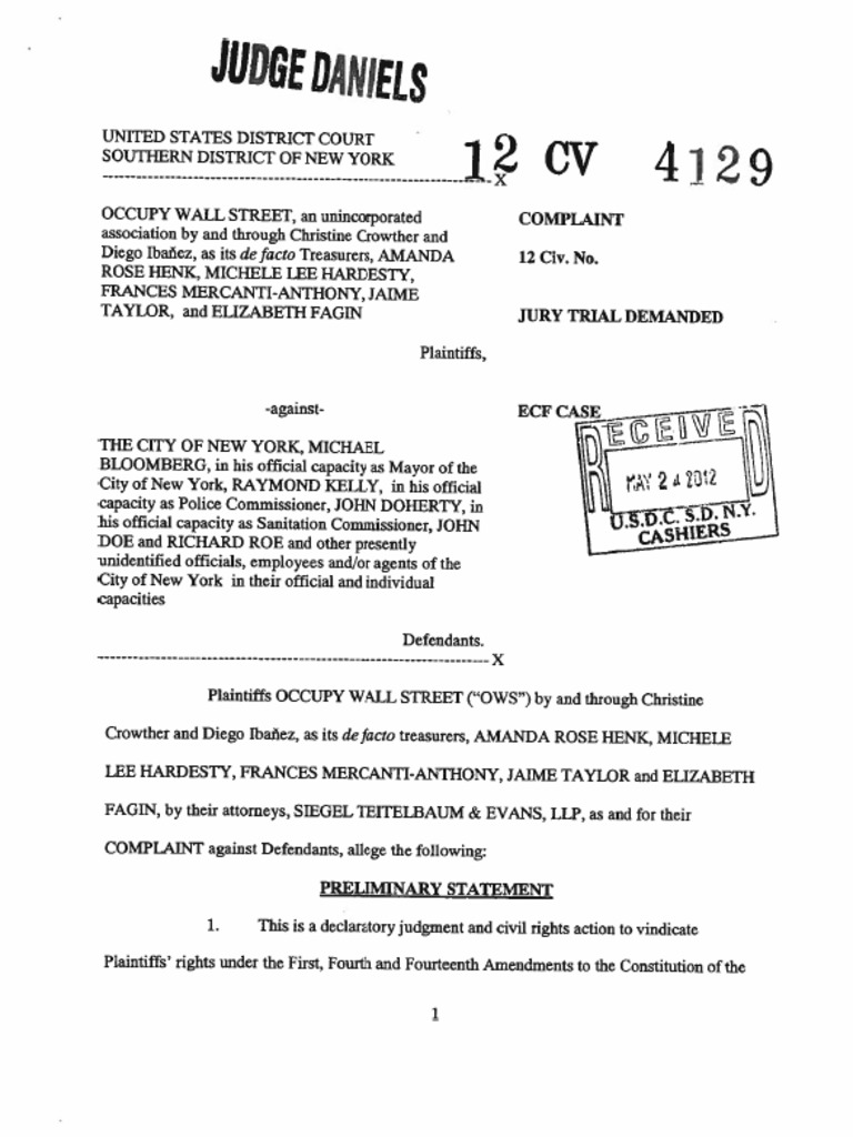 ‘OCCUPY WALL STREET, an unincorporated COMPLAINT