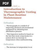 Providing opinions about the causes of exceptions, the integrity of the system, or recommendations for corrective actions requires knowledge and skills beyond those of infrared thermography. 4.2.1 4.2.2 4.2.3 Infrared thermography will be presented as an inspection technique to gather and present information about the system at a specific time. Infrared thermography will not be promoted as a remedial measure. An infrared inspection of an electrical system or rotating equipment does not assure proper operation of such equipment. Other tests and proper maintenance are necessary to assure their reliable performance.