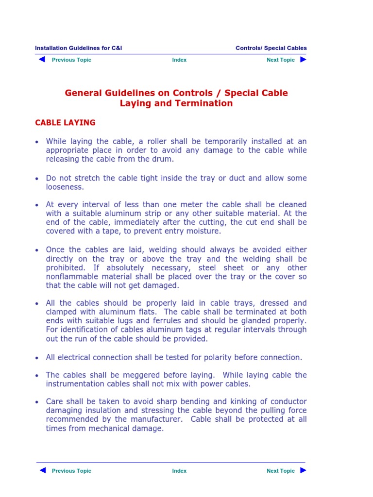 General Guidelines on Controls / Special Cable Laying and Termination