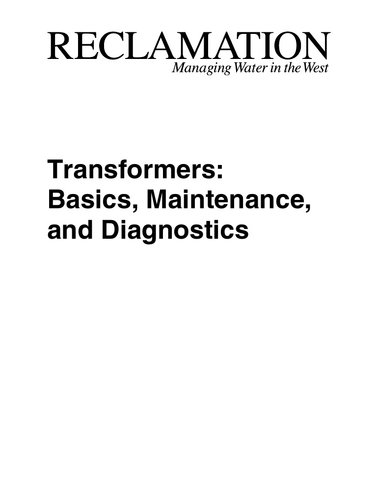 This document was created to provide guidance to Bureau of Reclamation (Reclamation) powerplant personnel in maintenance, diagnostics, and testing of transformers and associated equipment. This document applies primarily to the maintenance and diagnostics of oil-filled power transformers (500 kilovoltamperes [kVA] and larger), owned and operated by Reclamation, although routine maintenance of other transformer types is addressed as well. Specific technical details are included in other documents and are referenced in this document. Guidance and recommendations herein are based on industry standards and experience gained at Reclamation facilities. However, equipment and situations vary greatly, and sound engineering and management judgment must be exercised when applying these diagnostics. All available information must be considered (e.g., manufacturer=s and transformer experts recommendations, unusual operating conditions, personal experience with the equipment, etc.) in conjunction with this document.