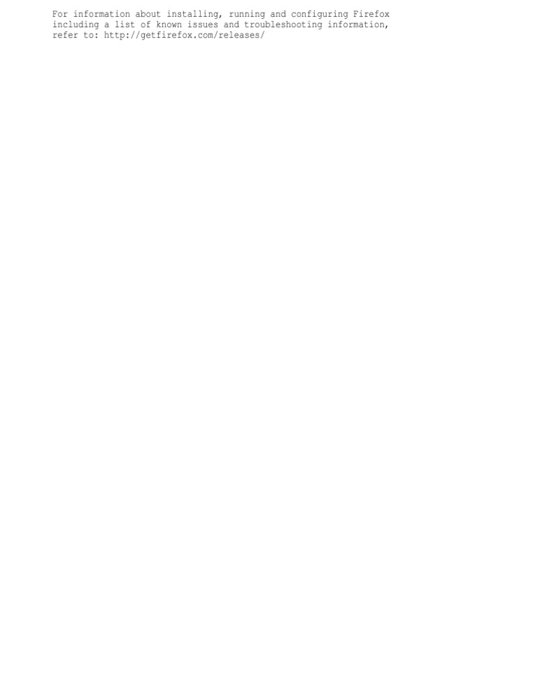 For information about installing, running and configuring Firefox including a list of known issues and troubleshooting information,