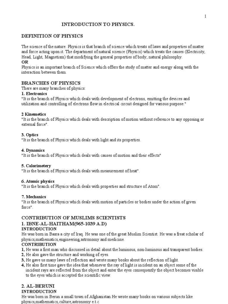 BRANCHES OF PHYSICS