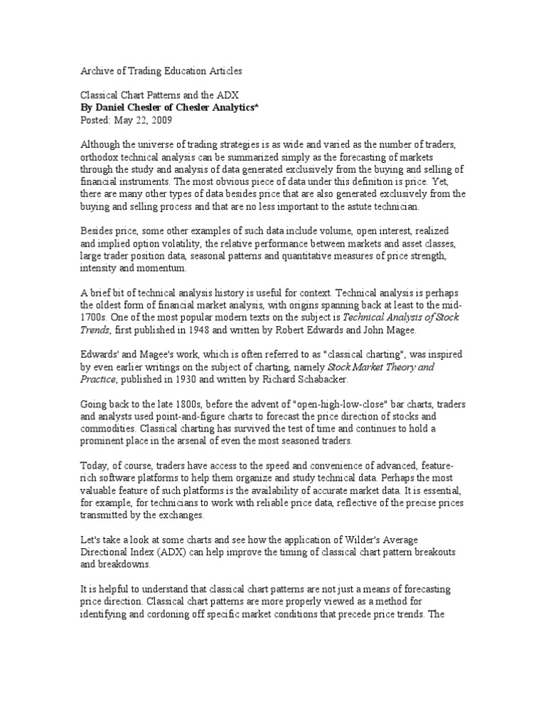 Archive of Trading Education Articles Classical Chart Patterns and the ADX By Daniel Chesler of Chesler Analytics* Posted: