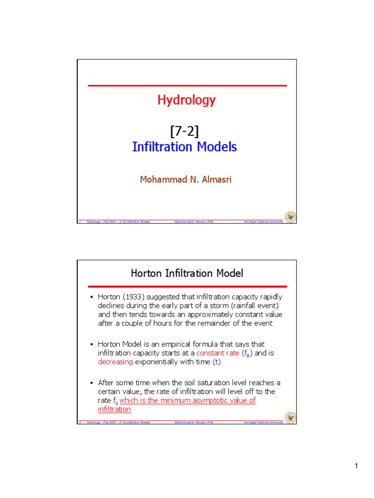 5 Hydrology Fall 2007 [7-2] Infiltration Models Mohammad N. Almasri, PhD An-Najah National University