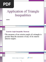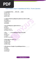 5. The diagonals of a quadrilateral ABCD intersect AO CO = . each other at the point O such that BO DO Show that ABCD is a trapezium. 6. By using the converse of the basic proportionality theorem, show that the line joining mid-points of non-parallel sides of a trapezium is parallel to the parallel sides. 7. If three or more parallel lines are intersected by two transversals, the intercepts made by them on the transversal are proportional. Prove. 8. PQR is triangle right angled at P and M is a point on QR such that PM QR. Show that PM2 = [Link]. 9. ABCD is a trapezium in which AB || CD. The diagonals AC and BD intersect at O. Prove that : (i) AOB ~ COD (ii) If OA = 6 cm and area ( ABO) OC = 8 cm, find : . area ( COD) 10. D and E are points on the sides CA and CB respectively of a triangle ABC right angled at C. Prove that AE2 + BD2 = AB2 + DE2. 11. ABC is a triangle in which A = 90, AN BC, AB = 12 cm and AC = 5 cm. Find the ratio of the areas of ANC and ABC. 12. ABCD is a square. F is the mid-point of AB. BE is the one-third of BC. If the area of the BFE is 108 cm2, find the length of AC. [HOTS]