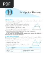 15. In an equilateral triangle, prove that three times the square of one side is equal to four times the square of one of its altitudes. 16. Using BPT, prove that a line drawn through the mid-point of one side of a triangle parallel to another side bisects the third side. 17. Using converse of BPT, prove that the line joining the mid-points of any two sides of a triangle is parallel to the third side. 18. Line 1 drawn parallel to side AB of quadrilateral ABCD meets AD at E and BC at F such AE BF that = . Then show that ABCD is a ED FC trapezium. 19. A girl of height 120 cm is walking away from the base of a lamp-post at a speed of 1.2 m/s. If the lamp is 4.8 m above the ground, find the length of her shadow after 4 seconds. 20. If ABC ~ DEF and, AL and DM are their corresponding medians, then show that AL AB BC AC = = = . DM DE EF DF 21. If ABC ~ DEF and, AL and DM are their corresponding altitudes, then show that AL AB BC AC = = = . DM DE EF DF 22. I f A B C ~ D E F , t h e n s h o w perimeter of ABC AB BC AC = = = . perimeter of DEF DE EF DF that
