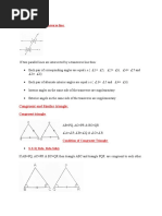 If in two triangles, two angles of one triangle are respectively equal to the two angles of the other triangle, then the two triangles are similar (AA similarity criterion). If in two triangles, corresponding sides are in the same ratio, then their corresponding angles are equal and hence the triangles are similar (SSS similarity criterion). If one angle of a triangle is equal to the one angle of another triangle and the sides including these angles are in the same ratio (proportional), then the triangles are similar (SAS similarity criterion). If a perpendicular is drawn from the vertex of the right angle of a right triangle to hypotenuse, then the triangles on both sides of the perpendicular are similar to the whole triangle and also to each other. The ratio of the areas of two similar triangles are equal to the ratio of the squares of any two corresponding sides. The areas of two similar triangles are in the ratio of the squares of the corresponding altitudes. The areas of two similar triangles are in the ratio of the squares of the corresponding medians. If the areas of two similar triangles are equal, then the triangles are congruent, i.e., equal and similar triangles are congruent. The Pythagoras Theorem In a right triangle, the square of the hypotenuse is equal to the sum of the squares of the other two sides. In figure, B = 90, so, AC2 = AB2 + BC2.