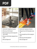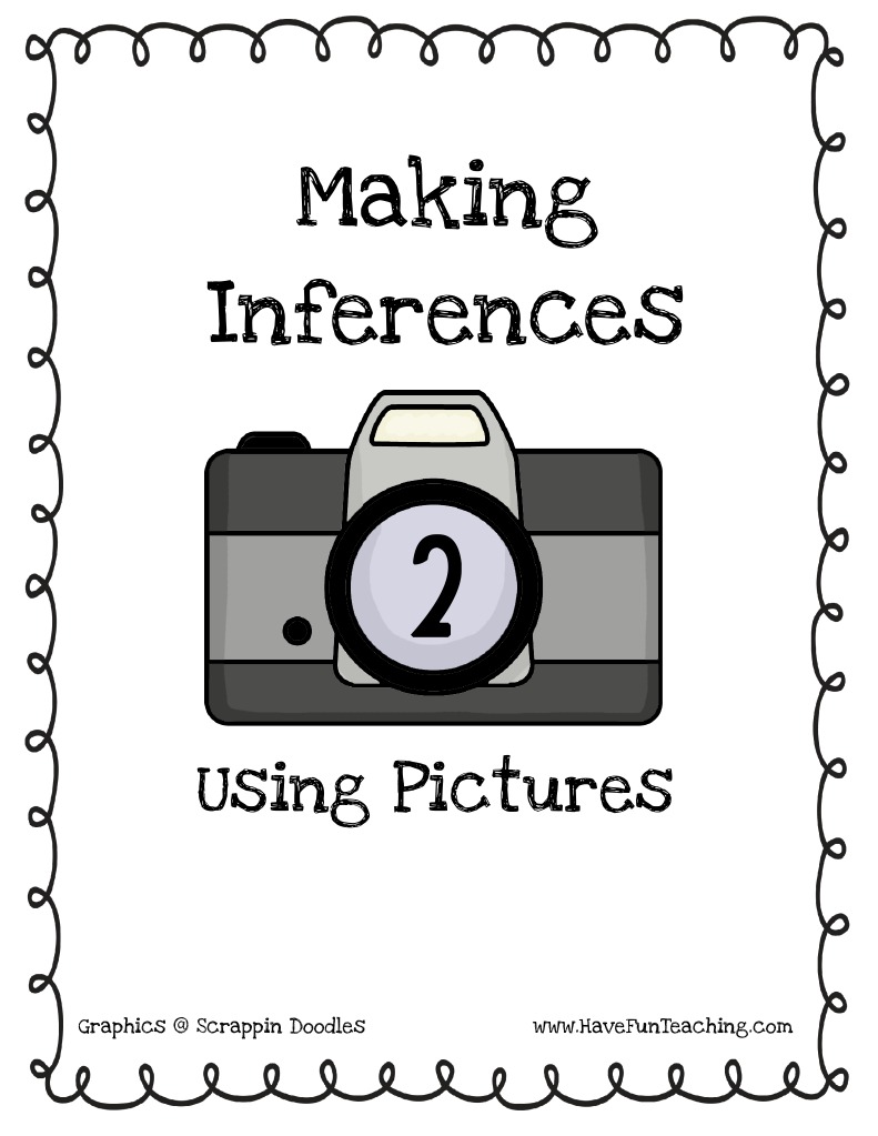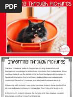The document discusses making inferences based on pictures. It provides an image of two students, one sitting at a desk with books and the other standing next to her. Below the image are several potential inferences about the picture, such as the students being friends, liking to read, helping each other, and enjoying school. The document encourages looking at the picture and making inferences about what is depicted.