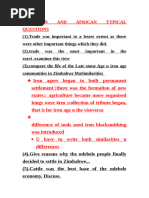 Drought. This caused associated problems for example shortage of pastures and ov erstocking There were ambitious leaders like Mutota who wanted to form his own state. Mutapa Rozvi Ndebele Zulu IDENTIFY IRON AGE SITES IN ZIMBABWE Great Zimbabwe Ziwa Chipadze Tsindi Danangombe Dhlodlo Khami Nhunguza Manyanga - Ntakazikamambo Nalatale Ruanga IDENTIFY ANY MADZIMBABWE Ruanga Chipadze Ziwa AFRICAN HISTORY: MAKAHA Copyrights reserved.no part of this publication may be reproduced or kept in any retrieval print or electronic system under whatsoever circumstances without the prior consent of r. makaha. 3 Nhunguza Masimbira Manekweni TO WHAT EXTENT DID THE CHANGES AS A RESULT OF IRON CONTRIBUTED TO THE FALL OF TH E GREAT ZIMBABWE? [8] Admit. The use of iron contributed to the fall of the Great Zimbabwe. The continuous cultivation led to loss of soil fertility so people migrated. The population grew as the people were settled permanently. This led to overpopulat ion of people therefore it resulted in shortage of resources mainly salt. The us e of weapons caused conflicts in society. However the use of iron was not the only cause of GZs decline. Ambitious leaders and drought also caused the decline. Analysis. If iron had not been introduced, then many activities e.g. trade would not have taken place. Also because of iron people became settled. The use of ir on weapons encouraged people to fight. Therefore iron contributed to the decline of GZ to a larger extent. DESCRIBE THE CHANGES THAT TOOK PLACE IN THE FARMING AND MINING COMMUNITIES OF TH E IRON AGE PERIOD HOW FAR DID THE PEOPLE OF ZIMBABWE BENEFIT FROM THESE CHANGES ABOVE? ORIGINS OF MUTAPA STATE The origins of Mutapa state are not clear as some historians argue that the stat e existed before the fall of Great Zimbabwe state. Others argue that the State w as formed or founded after the fall of GZS.However, all believe that the founder of the state was Nyatsimba Mutota.They also agree that the state was an offshoo t of the Great Zimbabwe State founded by people migrating into northern Zimbabwe . When Nyatsimba Mutota moved north from GZ he defeated the Tonga & Tavara who g ave him praise name Munhumutapa [one who conquers]. Archaeology shows similariti es in pottery used by the Mutapa and Great Zimbabwe State. Some stone buildings in the Dande valley have been certainly identified with the Mutapa State. MUTAPA EXPANSION Politically the Mutapa expanded by conquering other neighboring states for examp