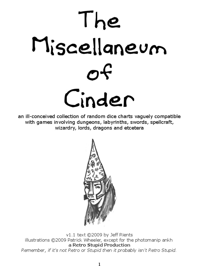 An ill-conceived collection of random dice charts vaguely compatible with games involving dungeons, labyrinths, swords, spellcraft, wizardry, lords, dragons and etcetera. No random table can fix a faltering game, but using input generated from a die chart can damage an otherwise functional campaign.