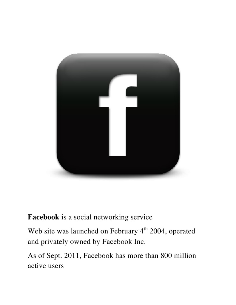 by Facebook Inc. As of Sept. 2011, Facebook has more than 800 million active users