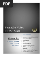 In a fixed pulley its block is connected from the weight. Rubber is more elastic than steel because we apply greater force to deform steel. Stress is a unit less quantity. The ratio of stress to strain is constant and is called modulus of elasticity. The force acting normally on a unit area is called pressure. Mass per unit volume of a body is known as density. In liquids the pressure at the same depth is not equal in all directions. The pressure inside a vessel containing gas is due to the weight of the gas. If the weight of a body is less than the upward thrust, the body will float on the surface of the liquid. Every substance has a definite density by which it can be identified. A solid object sinks in a fluid when the buoyancy force acting on the object is greater than the weight of the object. The average kinetic energy of the molecules of a body is proportional to temperature of the body. The increase in unit volume of a body per degree rise in its temperature is called the Co-efficient of volume expansion. At 4C the volume of water is minimum and its density is maximum. The real expansion of liquid is less than its apparent expansion. Heat is such a form of energy which cannot be converted into mechanical energy. The moderate climate of regions near seas and lakes is due to the maximum specific heat of water. Heat which is given to a solid body while it is melting, it is used to over come the Beautiful force between its molecules, the temperature of the body is not increased by the absorption of this heat. Cooling is produced in the compressor of a refrigerator by the process of evaporation. A maximum minimum thermometer measures temperature over a limit of usually 35C and 43C. The temperature of a liquid remains constant during the process of evaporation. Amplitude is the distance between the extreme positions of a vibrating body. The time required to complete one vibration is called time period. The motion of the bob of a simple pendulum is not S.H.M. Force applied to a spring is inversely proportional to the extension in the string. As the waves pass over the surface of water, the particles of water start moving with the waves. The velocity of a wave is equal to the product of the frequency asnd wavelength of the wave.