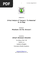 This analysis will concern itself with the peaks of Tennysons life as a poet, and highlights number axioms from five of his prominent poems. As such, selections of poems from In Memoriam, and Someday, will constitute the basis for the analysis.