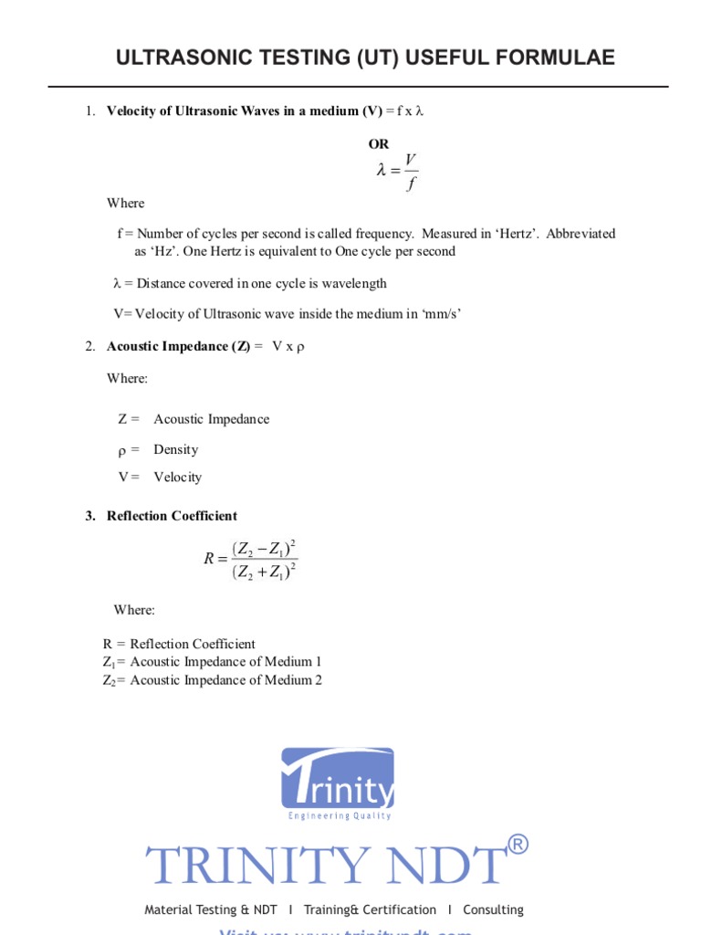 ULTRASONIC TESTING (UT) USEFUL FORMULAE